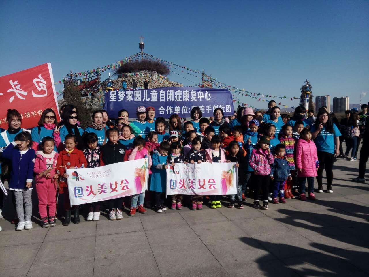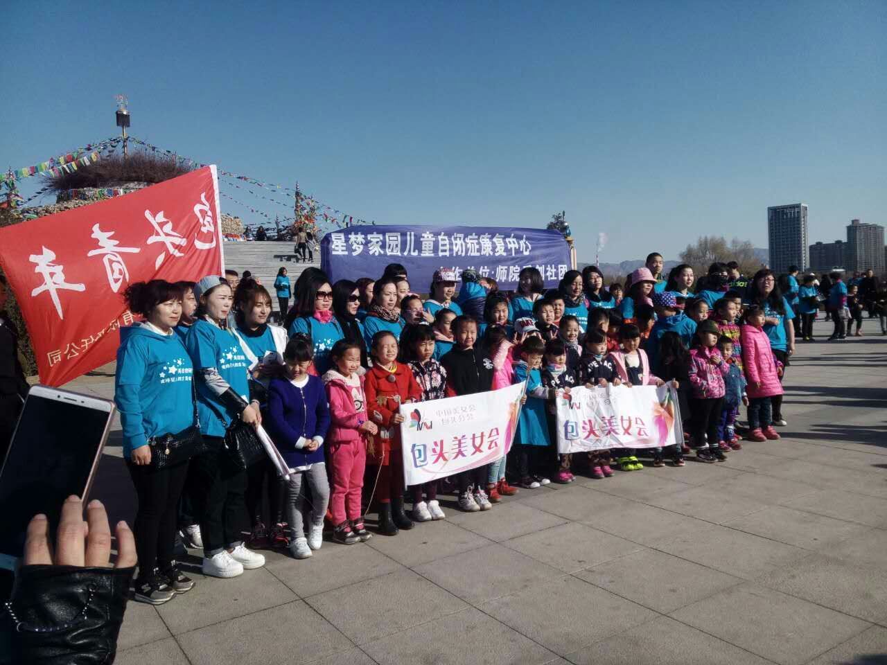 今年是世界第九个自闭症日,为此包头师范学院美术学院联合包头市妇联、美女会、青山区残联、星梦家园儿童自闭症康复中心等各界爱心人士共同参与了这次主题为“蓝色徒步运动日,携手共绘一片蓝”的大型公益活动,旨在向社会大众普及自闭症知识、尊重和关爱自闭症儿童,并主动积极的带着星星的孩子融入社会,走进我们的生活,用爱温暖他们的心,让他们度过一个自信和愉快的节日。